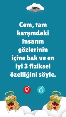 Sosyal toplantılarınıza heyecan katmaya hazır mısınız? Bu eğlenceli ve dinamik deneyim, arkadaşlarınızla bir araya geldiğinizde buzları eritmekten çok daha fazlasını vaat ediyor. En yakın dostlarınızın bile saklı kalmış en beklenmedik sırlarını veya cesaret isteyen eğlenceli yönlerini gün yüzüne çıkarmaya cesaret edin. Klasik doğruluk mu cesaret mi oyununu modern ve sürükleyici bir formatla yeniden keşfedin. Unutulmaz anılar yaratın, kahkahalara boğulun ve belki de hiç beklemediğiniz derinliklerdeki karakter özelliklerini ortaya çıkarın.