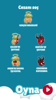 Bu oyun, her ruh haline ve her türlü arkadaş grubuna uygun, özenle hazırlanmış farklı soru paketleriyle dolu. "Gerçek Melekler" paketiyle nazikçe başlayabilir, partinizi sıcak ve keyifli bir atmosferle başlatabilirsiniz. Ancak limitleri zorlamak isterseniz, "Çılgın ve Şeytani" paketiyle adeta yerinizde duramayacak meydan okumalarla karşılaşmaya hazır olun. Yetişkinler için tasarlanmış "Edepsiz ve Şeytani" ile cesaretin sınırlarını zorlayabilir, "Cehennem Kapısında" ile ise dönüşü olmayan bir eğlence yolculuğuna çıkabilirsiniz. İlişkinizi tatlandırmak isteyen çiftler için "Adem ile Havva İşe Koyul" paketi, samimi ve özel anlar yaratacak sorularla dolu.