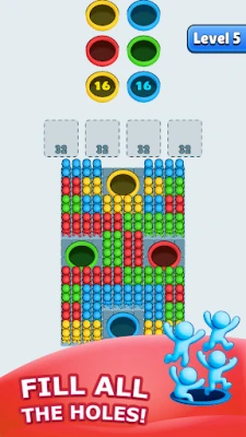 Hole People, basit ve stratejik bir bulmaca deneyimi sunar. Tüm çöp adamları yuvalarınız dolmadan deliklere yerleştirin. Önleri boşaltmak, başarılı olmak için anahtardır. Farklı renklerin birbirini engellediği bu oyunda her hamle önemlidir. Eğlence ve stratejiyi bir araya getiren benzersiz bir macera.