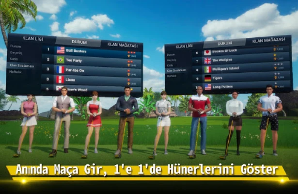Dünyanın dört bir yanından gerçek golfçülere karşı nefes kesen maçlarda mücadele etmeye hazır ol. Gerçek zamanlı çok oyunculu golf deneyimiyle yeteneklerini sergile, rakiplerini yen ve küresel sahalarda zirveye oyna. Stratejini belirle, en iyi vuruşlarını yap ve golfün ustası ol.