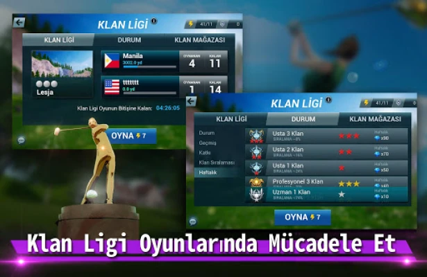 Sadece oynamakla kalmayın, kendi golf sopalarınızı yaratma gücüne de sahip olun. Nadir bulunan bileşenlerle donatarak sopalarınızın performansını zirveye taşıyın ve sahadaki farkınızı ortaya koyun. Ekip ruhunu Perfect Swing'de yaşayın; bir klana katılarak veya kendi klanınızı kurarak Klan Ligi'nde rakiplerinize meydan okuyun ve takımınızla birlikte golf dünyasının en iyisi olduğunuzu kanıtlayın. Ustalaşma yolculuğunda her vuruşunuzu mükemmelleştirin ve yeşil sahalarda adınızı duyurun.