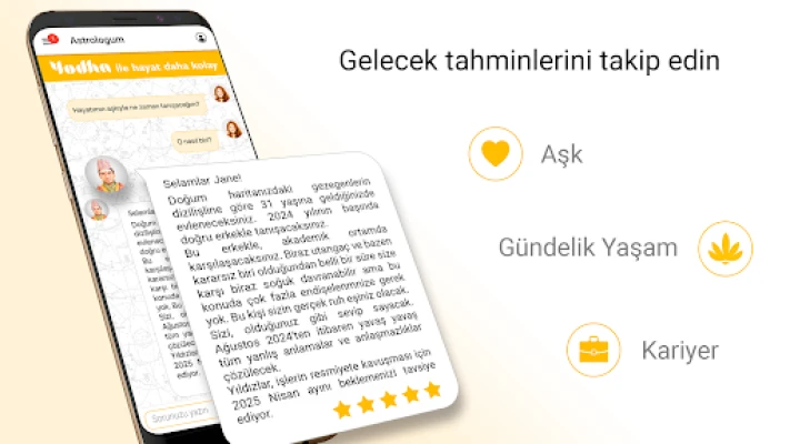 Hayat yolculuğunuzda pusulanızı kaybetmeden ilerlemek, kaderinizin ipuçlarını çözmek ve potansiyelinizi tam anlamıyla keşfetmek ister misiniz? Yodha, evrenin size özel fısıltılarını duymanız için yanınızda. Doğum haritanızın derinliklerine inen analizlerle, aşk hayatınızdan kariyerinize, aile ilişkilerinizden kişisel gelişiminize kadar her alanda aydınlatıcı yanıtlar sunuyoruz. Kişiliğinizin gizemlerini aralamak, farkındalığınızı artırmak ve böylece yaşamınızın her köşesinde olumlu değişimler yaratmak için Yodha size ilham veriyor.