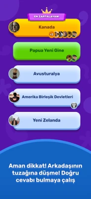 ZARTA ONLİNE BİLGİ YARIŞMASI, bilginin ve eğlencenin sınırlarını yeniden tanımlayan, zeka dolu ve sosyal bir deneyim sunar. Genel kültürden yemek-içmeye, tarihten mitolojiye, popüler dizilerden sanata kadar onlarca geniş kategorideki binlerce iddialı soruyla karşılaşmaya hazır olun. Arkadaşlarınızla keyifli vakit geçirirken aynı zamanda gündemdeki ve şaşırtıcı birçok yeni bilgi edinmenin tadını çıkarın. Bu platformda sadece doğru cevapları bilmekle kalmayacak, aynı zamanda rakiplerinizi zekanızla yanıltarak sahte cevaplar üretme sanatında ustalaşacaksınız.